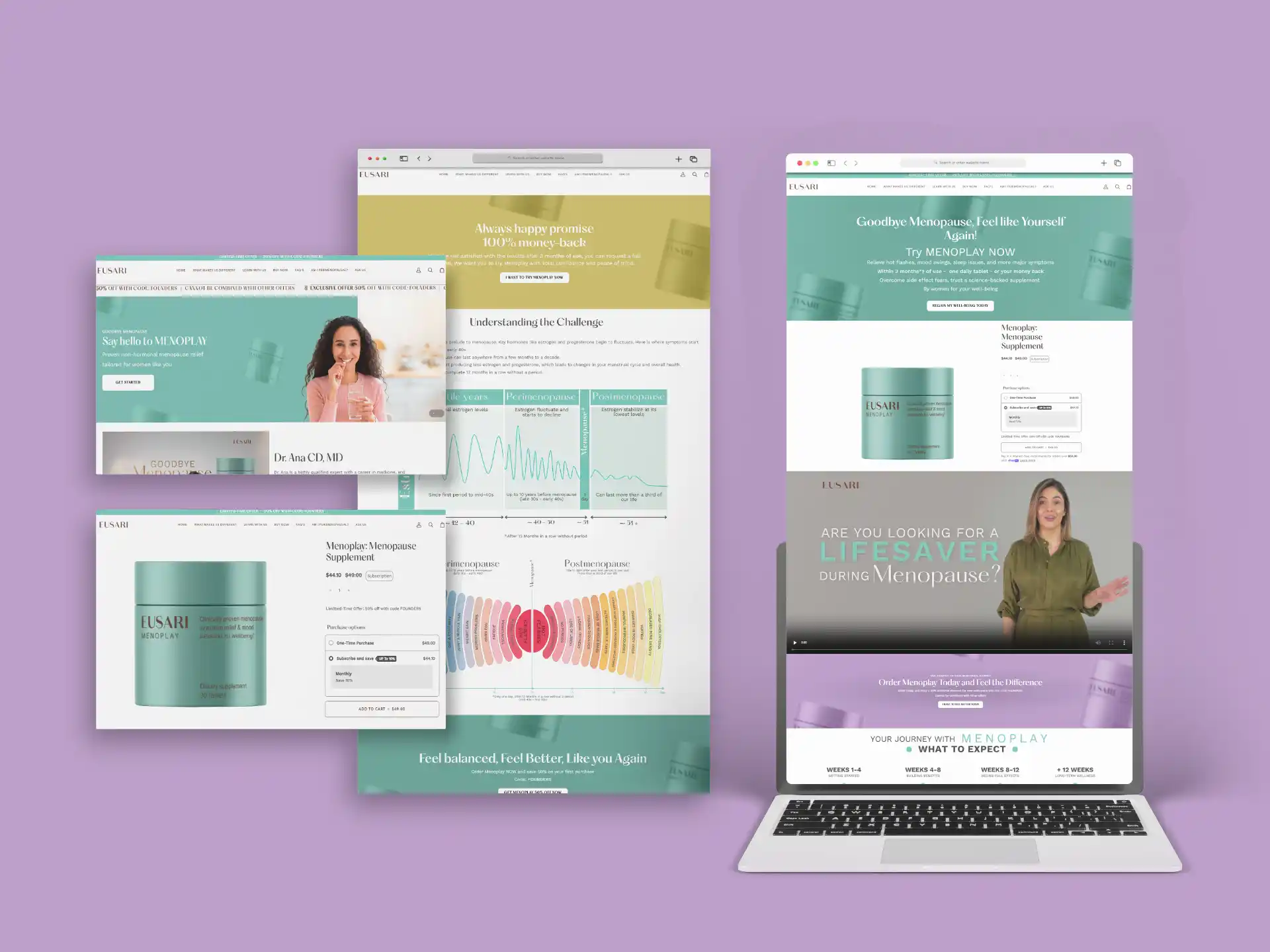 Eusari Nutrition LLC es una empresa dedicada a la creación de suplementos dietéticos adaptados para fines médicos, enfocándose en aliviar síntomas asociados con la menopausia. Uno de sus productos destacados es MenoPlay, una mezcla diaria que combina 10 ingredientes naturales destinados a aumentar la energía, promover la calma y apoyar la libido en mujeres. Este suplemento se presenta en forma de bebida diaria, facilitando su consumo y absorción. En colaboración con Efeonce, se desarrolló una estrategia integral de comunicación y diseño para fortalecer la presencia de la marca MenoPlay en el mercado. Las acciones implementadas incluyeron: diseño de identidad visual, diseño para anuncios publicitarios, edición y animación de vídeos promocionales, diseño web y email marketing.